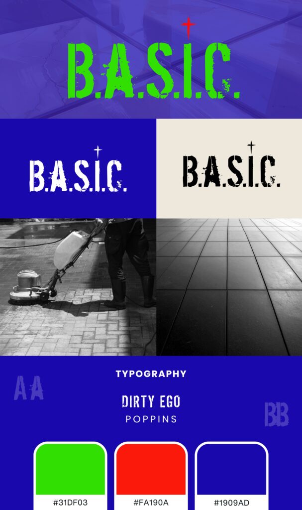 BASIC Logo Elements: Font – Dirty Ego Colors: • Green – #31df03 • Red – #ff0909